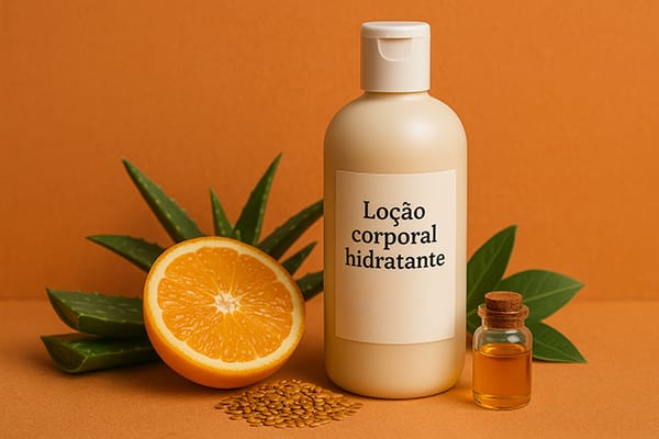 • Loção corporal hidratante (linhaça dourada, glicerina, aloe vera, óleos essenciais)