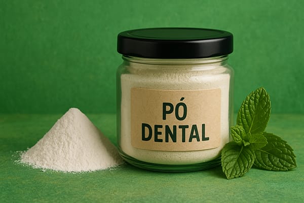 • Pó dental natural (carbonato de cálcio, bicarbonato, stevia e óleos essenciais)