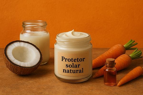 • Protetor solar natural (com óleo de coco, manteiga de karité, óxido de zinco não-nano e óleo de semente de cenoura)