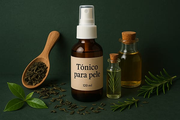 • Tônico para pele e antiolheiras (chá verde, vinagre de maçã, óleos essenciais)