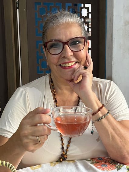 É naturopata há mais de 30 anos, apaixonada por alimentação natural, saúde integral e cuidado com o planeta. É assumida e ama seus fios grisalhos.